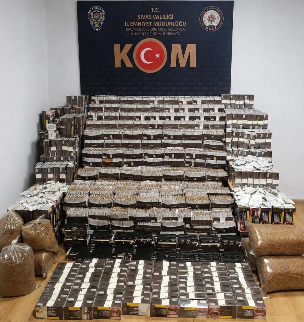 Sivas Emniyeti’nin düzenlediği operasyonda çok sayıda makaron ve kıyılmış tütün ele geçirilirken 1 kişi hakkında yasal işlem başlatıldı.
