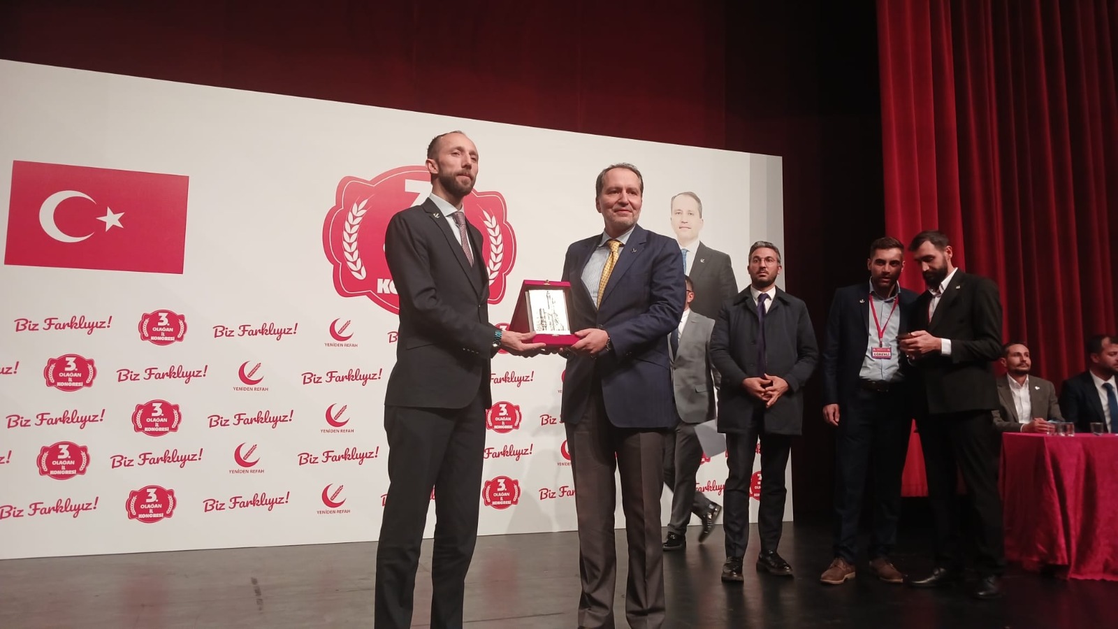 Daha sonra Yeniden Refah Partisi Sivas İl Başkanı Cabir Çetinkaya ve kadın kolları teşkilatı Yeniden Refah Partisi Genel Başkanı Fatih Erbakan kongreye katılımlarından dolayı teşekkür plakatı takdim edildi.