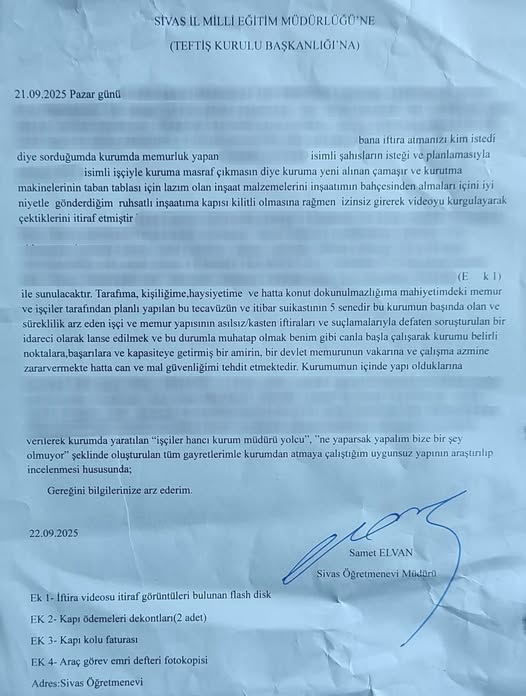 “Tarafıma karşı sipariş üzerine çektirilen iftira ve kurmaca videolar, daha servis edilmeden önce, 22/09/2025 tarihinde İl Milli Eğitim Müdürlüğü’ne bizzat şahsım tarafından soruşturma ve inceleme talebi yapılmıştır.