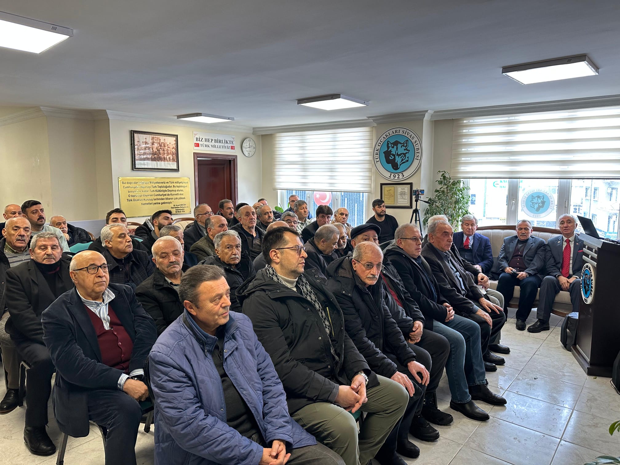 Türk Ocakları Sivas Şubesi tarafından, Emekli Tümgeneral İbrahim Aydın’ın katılımlarıyla düzenlenen “Küresel ve Bölgesel Gelişmeler Kapsamında Türkiye’nin Güvenliği” konulu konferans, hemşehrilerimizin yoğun ilgisiyle gerçekleştirildi.